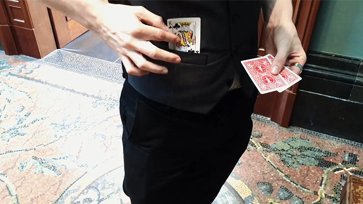 Visually, one at a time, the first two Kings appear in between two Jokers. As a finale, the final two cards also change into Kings. The Jokers have vanished from the packet!