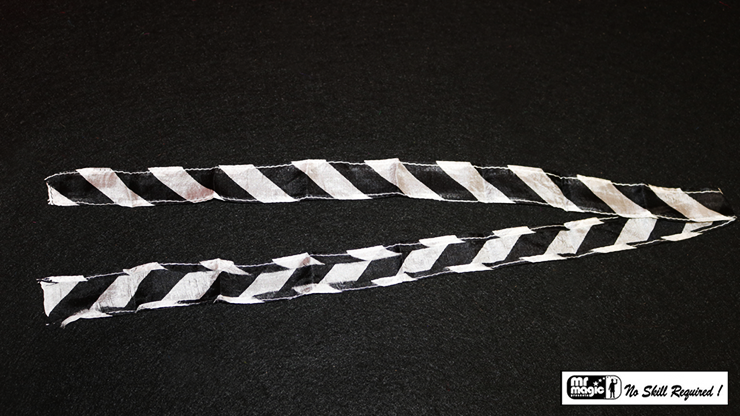 Mr. Magic Thumb Tip Streamer allows the magician to cleanly show both hands empty. The magician then makes a fist with one hand and, with the other, pulls out a black and white, zebra silk streamer! This is an AMAZING-looking effect.