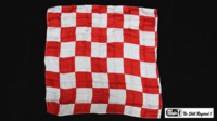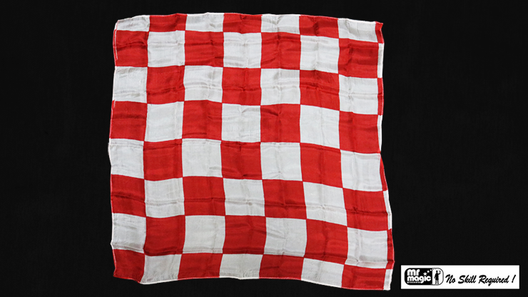 A production silk with red and white squares resembling that of a chess board, measuring 21 inches by 21 inches. When folded, this fine silk takes up very little space.