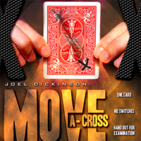 A cross is drawn on the top corner of a selected and signed playing card. Then the magician places the signed card between the cellophane and the box, and the cross visually travels from one corner of the card to another. The card is removed and handed out for examination.