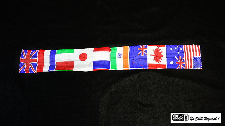 With just a shake, this black silk streamer will turn into a stream of colorful national flags of different countries. Approximately 5" x 40". Your audience will love the surprise appearance and its beauty.