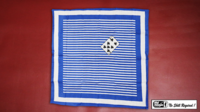 A beautiful blue and white hanky with a card printed on a corner. This hanky is to be used for an effect in which your spectator's selected card has been predicted beforehand on the hanky.