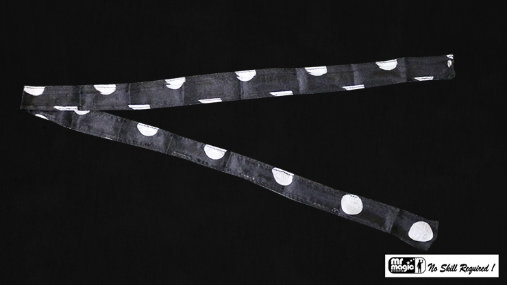 A beautiful silk streamer that appears from your seemingly empty hands. Fits perfectly inside your Thumb Tip. This silk streamer is decorated in black with white polka dots.