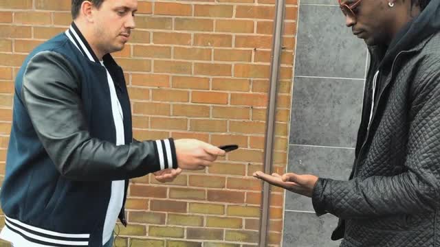 The magician then explains about invisible pickpockets and, with a slight flick of the wrist, the card changes into a bill.