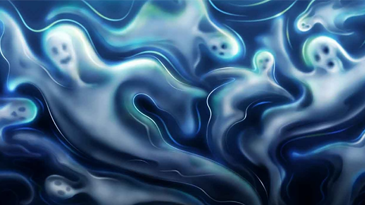 "The chosen card travels, ghost like into a card box, that comes to life."