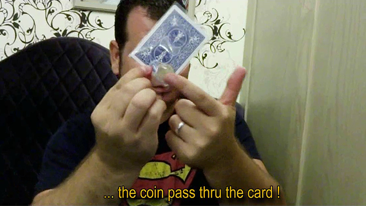 A plastic sleeve, a coin, and a regular playing card! You are ready to perform PASS, a totally crazy effect!