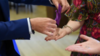 A second ring from another spectator is also borrowed. This ring then changes into the first spectator's ring! The second ring is then tipped out of the drawstring bag.