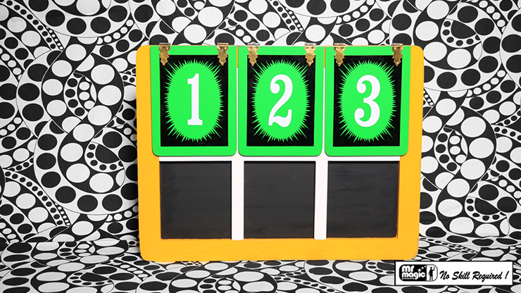 Your three predictions written on a slate will perfectly match your three spectators' different selections. An amazing mind-reading routine!