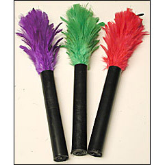 The magician displays a plume of colored feathers with a small handle at the bottom. The magician passes the plume behind his back and it changes to a completely different color! The magician may then repeat the effect changing the plume back to its original color.