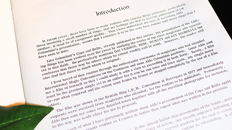 Aldo Colombini's presentation of the Rings Supreme is a very solid and entertaining routine for any audience. If you perform The Chinese Linking Rings and are not aware of the Rings Supreme routine, then this book is a MUST HAVE!