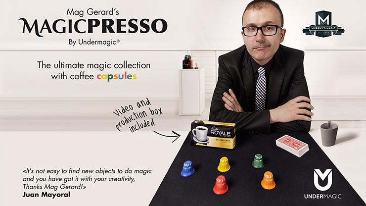 MAGICPRESSO is the ultimate magic collection using coffee capsules. In more than one hour of instructional video (English and Spanish audio available), Gerard will teach you more than 13 ideas and routines both for close-up and stage: illusions, color changing, predictions and even gags.
