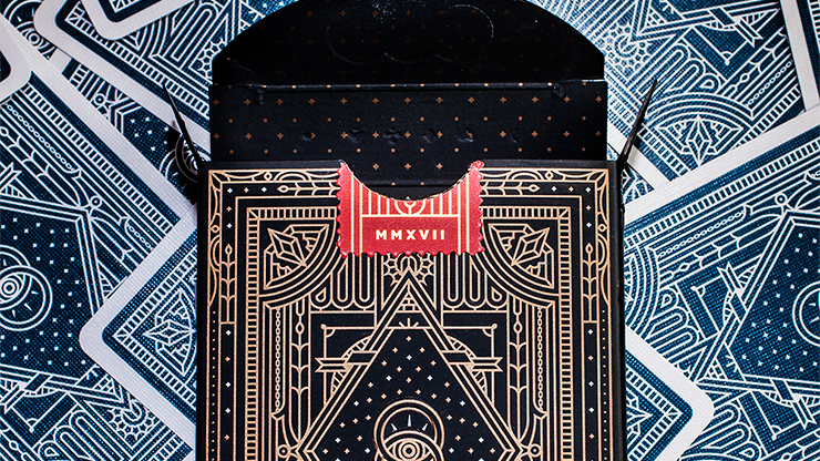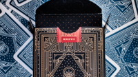 This tuck case is made from a very dark navy blue, and the front shows the name of the deck,