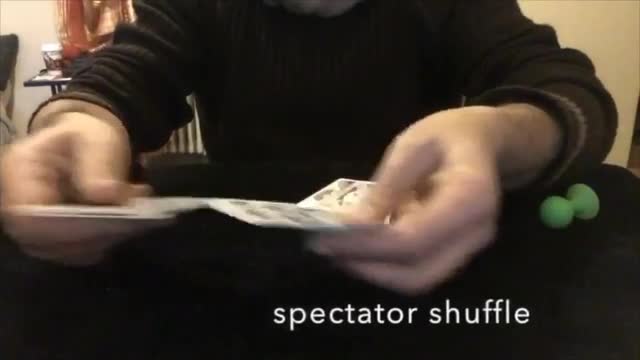 Your deck of cards has stickers on each card. Each sticker is either pointing left, right, up or down. The spectator takes off some cards and mixes them, while the performer deals the remaining cards face down onto the table in a large grid. The spectator is then asked to deal their cards onto the table in an interesting way: the first card is dealt onto one of the face down cards, and then the next is dealt in whichever direction the previous card's sticker is pointing. When the spectator finishes dealing their cards in this manner, they turn over the card to which the final sticker is pointing. It is your prediction!