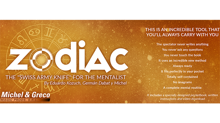 With this little innocent-looking book, which fits perfectly in your pocket, you'll be able to perform a complete mental act. You will divine instantly the sign, day, and month of birth of any spectator. You'll also be able to divine the spectator's aura, their personality trait, and the spectator's lucky card. You will know everything immediately, without touching or coming near the book and without any fishing or questions. THE SPECTATOR NEVER WRITES ANYTHING. You'll also be able to divine a freely chosen word from the book. This book allows you to do a complete routine with divinations, predictions, coincidences, ACAAN (Any Card At Any Number), calendar card, etc.