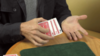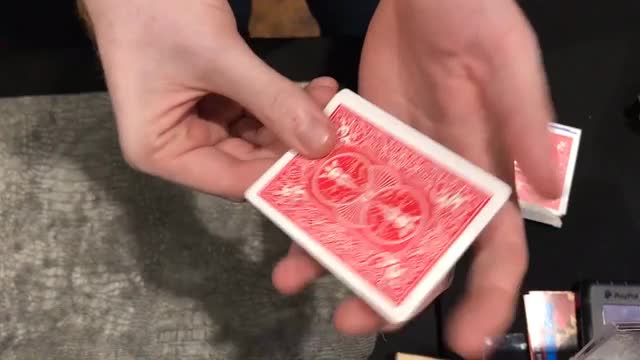 The magician then removes the selection and gives it a rub on his sleeve. The card is turned over and is now seen to have a different colored back!