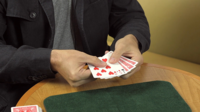 The magician then flips three cards face up and clearly interlaces them between the other three face down cards. As he squares up the packet, the magician explains that there are three magical ways to distinguish the selection from the other five cards.