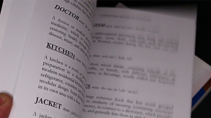 A spectator opens the book to any page and chooses a word describing something that she can visualize in her mind.