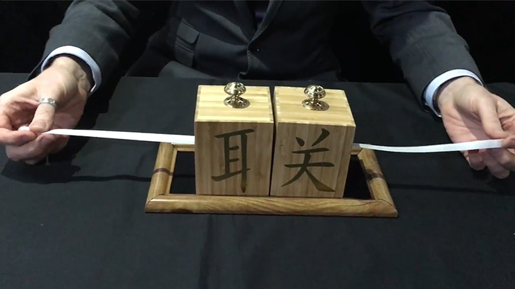 This is a fantastic effect and is very easy to perform. You show a tray, front and back, and place this down on the table. Now, you place two Chinese-style tea chests on the tray. The chests have holes running through the sides, and through the holes a white ribbon is threaded. The ribbon can be initialed at each end by a spectator. The boxes are now parted, and the ribbon can clearly be seen to run from one chest to the other. The ribbon is now CLEARLY cut between the two chests, and can now be seen to be in two halves. You call the spectator's attention to the Chinese symbols on the box, which translate into English as 'Unity.' The boxes are placed next to each other, and the ribbon pulled from one end. Amazingly, the whole ribbon starts to move and can be pulled through the chests to show it is in one piece! The ribbon can now be examined to show that the initials are there, and it is indeed in one piece. It can be given away as a souvenir or used again. The method is ingenious, and we are sure you will appreciate the quality and simplicity of this effect!