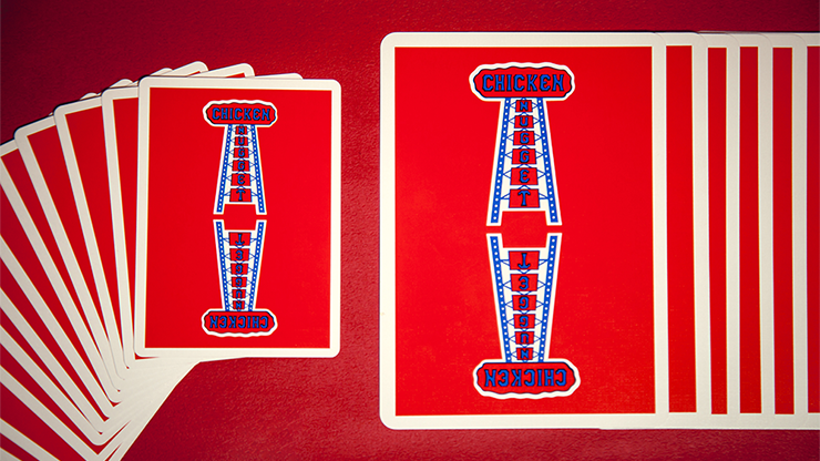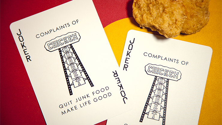 This jumbo deck is specially printed as an enlarged version of the Chicken Nugget Playing Cards. And it originated from Horret Wu's words, "Hey Hanson, if you make a Jumbo Chicken Nugget Deck, then I can use it in my routine, right?" Thus, this jumbo deck was born. Horret also shows off some of his great moves with the Jumbo Chicken Nugget Deck in the trailer.