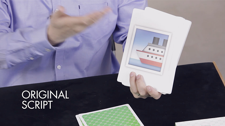 A spectator thinks of a movie from 52 choices, and the magician has to guess his movie and tell its story using a jumbo shuffled deck with emoticon faces and designs. The script has plenty of gags and magic and ends with a big surprise that will allow you to connect with your audience.