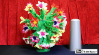 The magician shows an empty tube open at both ends and then places it on a flat wooden base. He drops a flower dart in it or sprinkles some invisible magic seed. After some magical gesture, when he lifts the tube, a large bouquet of flowers appears. It is even larger than the tube!