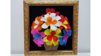 In a blink, the picture is no longer a picture - it has turned into a REAL vase full of colorful flowers in the frame. Then the magician REMOVES the flowers and flower pot from the frame!!