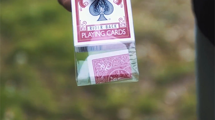 Now for the magic! The cellophane surrounding the box is moved forward a little bit. Then, in the blink of an eye, a folded card appears in the space created by the cellophane! The spectator removes the cellophane, the card is unfolded, and it's their signed card! IMPOSSIBLE!