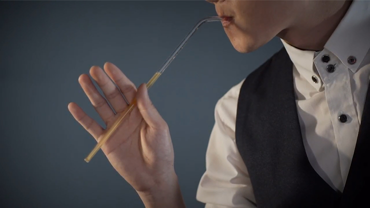 The magician first shows a bottle filled with a beverage, along with a "transparent straw." Then, when the audience expects the magician to place the straw into the drink, they are surprised - it begins sucking up the liquid while held in the air, not the bottle! And, the liquid in the bottle gradually decreases! When the magician finishes the drink, he can temporarily freeze the drink in the straw, and then slowly allow it to flow out.