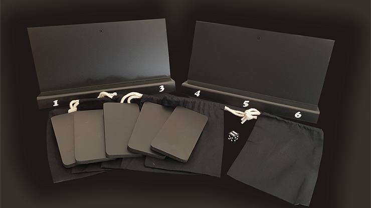 Let's imagine a game, a game of luck: A spectator's mobile phone is placed in a bag. This bag is mixed with 5 others, each containing a plate of the dimension of mobile phones. These bags are placed on two holders.