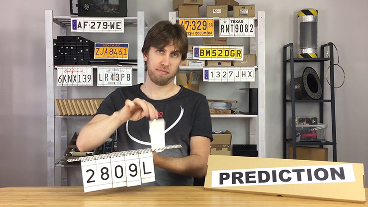 This can be themed as either the magician knowing ahead of time what license plate would be created by the audience, or the audience has some special ability to predict the license plate hidden by the magician!