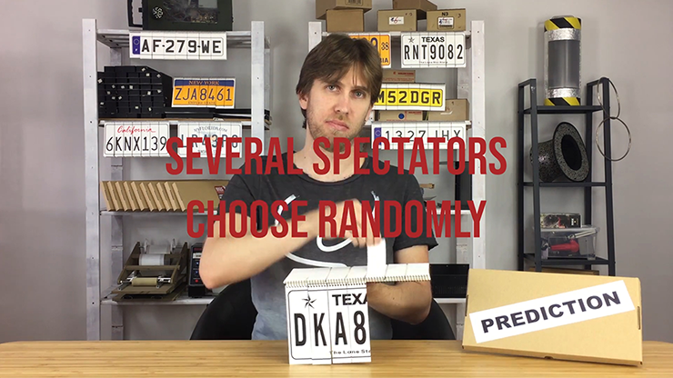 This can be themed as either the magician knowing ahead of time what license plate would be created by the audience, or the audience has some special ability to predict the license plate hidden by the magician!
