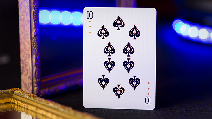 CUSTOM PIPS, NUMBERS AND FACES - All of the pips and numbers are 100% custom! The faces feature De'vo's signature faceless court design in a beautiful gold and red colored ink.