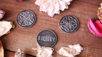 Each timeless, antique finished, lead-free pewter coin, with milled edges, bears the Celtic symbol for 'luck' embossed onto the face, with the special reveals embossed onto the reverse side.