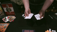 NANOMETER - The badges are tipped out onto the bag. From a line of ESP cards, a spectator freely chooses one and thinks of the symbol. They concentrate on it so hard that you reveal it, and then direct their powers to the badges... all of them drop off except for one - their chosen symbol is suddenly PINNED onto the bag!