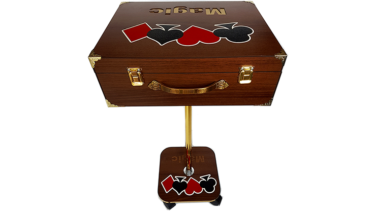 The base packs inside the suitcase (when it is party or totally empty) and the suitcase and bottom plate are beautifully decorated with the words MAGIC and card symbols. Assembly takes about 20 seconds.