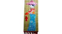 The magician shows a rolled up Chinese bamboo or wicker mat and unrolls it to reveal a colorful and mysterious design.
