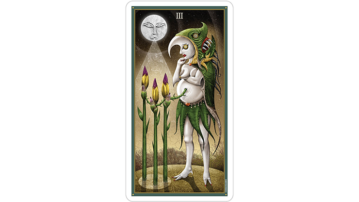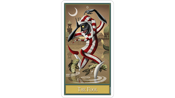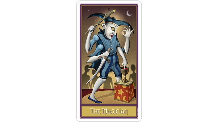 Talented artist Patrick Valenza presents uniquely alternative interpretations of traditional tarot, with symbolism inspired by childhood dreams. Stylized moon-faced characters created from manipulated photographs of 18th century tombstones are set against evocative backgrounds. Incorporated into the artwork are surreal scenes of distant smoke stacks, insane asylums and abandoned buildings.