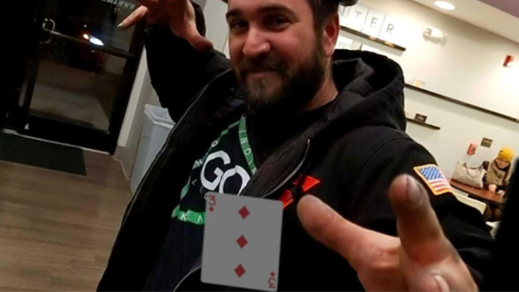 A Selected Card Appears Floating in Front of a Spectator in a Photo on Your Page on Facebook. It's a Fun Routine that Gets You Laughs and Likes!