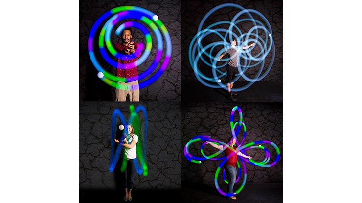 Create glowing light trails at night with Spinballs LED Glow Poi! Poi is Maori for 'ball on a string.' These glow poi are attached to adjustable leashes and light up the entire spectrum of the rainbow! Spin them around in rhythmical and geometric patterns similar to Tai Chi to create a stunning visual effect. To help you get started, download our app to learn the moves and motions.