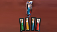 You show four holders, each holding a picture of a doll with a different colored dress. You ask a child to FREELY select any of the holders and you take out the picture (a lady in a blue dress). You place the picture inside an empty box. When you snap your fingers, the picture changes into a REAL 3D doll in a BLUE DRESS!