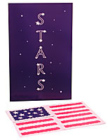 EFFECT: Each of four cards is shown to have a large star on its front and back. One of them then magically changes to a card covered with many stars! The remaining three cards then also change to cards with red stripes, and when the four are put together they form an American flag!