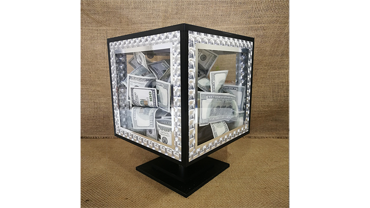 Some wonderful,magical transformations take place in this trick! First, show a big black die and a regular silk to the audience. Touch the die with the silk. By doing this, the die changes to a crystal cube full of balls (or a dove, rabbit, etc.). The show is not finished yet! Remove the balls and your crystal cube will be full of cash this time! Once again try to empty the crystal cube and remove the crystal cube from its base -- suddenly the base of the crystal will transform to a bunch of colorful flowers!