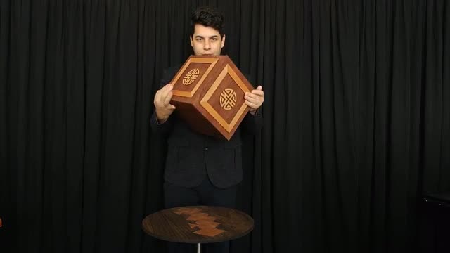 On the magician's table, there is a box; its shape is similar to a cube. On that box, a cage is seen. The size of the cage is exactly the same size as the box. The magician puts two doves inside the cage from the door at the top and then puts the cage inside the box. He then picks up the box and holds two sides of it and turns it several times. He returns the box to the table again and opens its door. All of a sudden, the audience sees that the dove cage has been changed into two rabbits or... At last, the magician shows the cage to be quite empty.