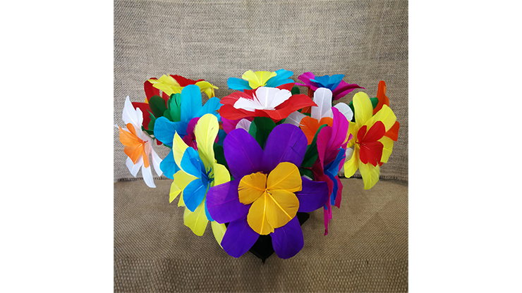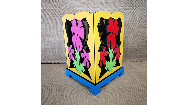 The magician shows a pedestal, he waves a wand over it and magically makes a flower appear! Then he shows a cut out tube, clearly empty. He puts it on the pedestal, makes a magic gesture, removes it and magically the pedestal is now full of beautiful flowers!