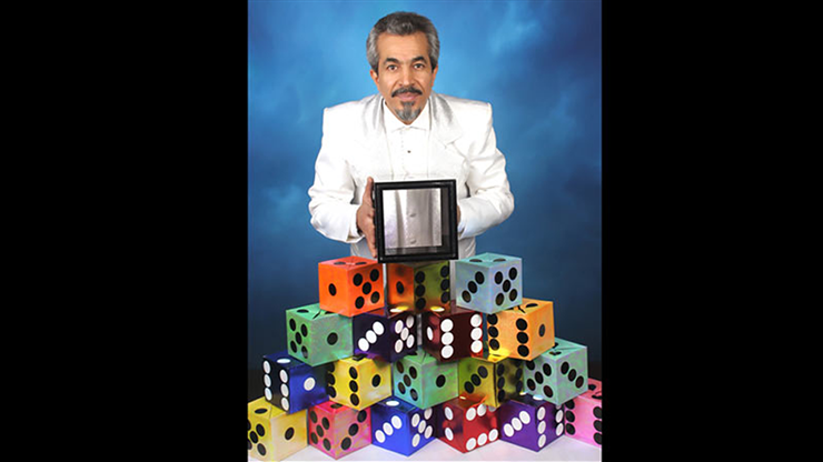 Show an empty square tube to the audience... and immediately produce three colorful big dice from it. Show the tube empty and produce three more colorful large dice... repeat this until you have produced TWELVE brilliant big dice in 12cm x 12cm, filling your performance table!