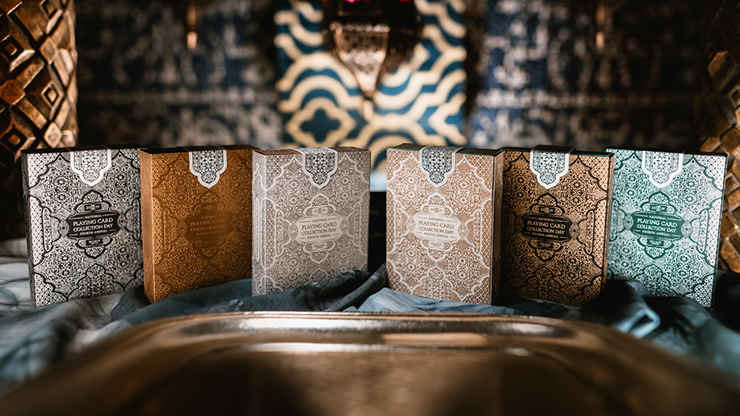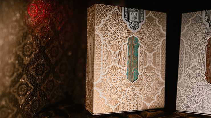 Each deck is printed on air cushion finish, with ROOM decks featuring the added bonus of a gorgeous raised tiling effect on each card back itself to mimic the tiles of Moroccan walls and floors. Each ARCH deck features this same effect, however it is on the face of each card, on the pips themselves, to make each card more tactile and immersive.