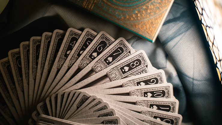 Each deck is printed on air cushion finish, with ROOM decks featuring the added bonus of a gorgeous raised tiling effect on each card back itself to mimic the tiles of Moroccan walls and floors. Each ARCH deck features this same effect, however it is on the face of each card, on the pips themselves, to make each card more tactile and immersive.