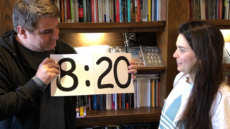 You have an image of a handless clock and ask someone form the audience to randomly choose an hour and minutes. You draw the hands with a marker on the clock, and immediately reveal that your prediction matches their selections!