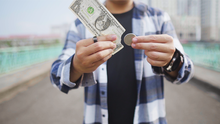 TRUE VALUE is a simple and modern trick that works with a bill, ticket, banknote ... A corner of the bill seems to float and then visually transform into a coin. The best part -- everything can be handed it out instantly for examination.