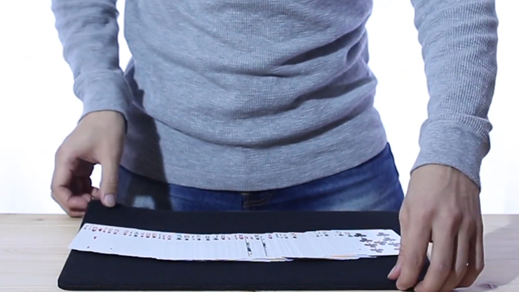 Spread the deck on the pad. Both sides of the cards are displayed...